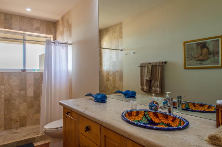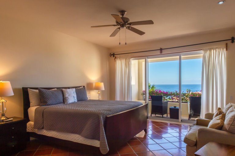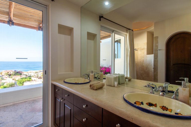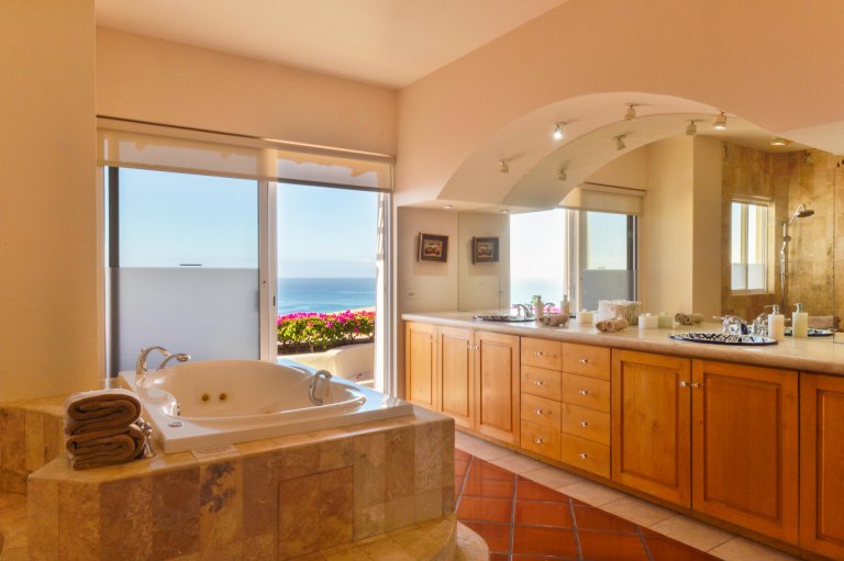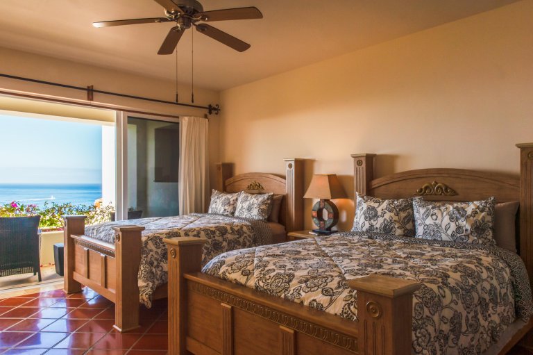 The spacious bedrooms at Cabo Casa Perla offer guests an upscale and comfortable place to rest. The first bedroom has a king-size bed, its own sofa bed, and en-suite bathroom. The luxurious bathroom has a Jacuzzi bathtub. Guests of this ocean-view room get step out onto their own private balcony. The second bedroom also faces the Pacific Ocean. Guests of this room have their own balcony, a king-size bed, and an en-suite bathroom with a large shower. The third bedroom also has a king-size bed, private balcony, and en-suite bathroom with a shower. The fourth and fifth bedrooms at Cabo Casa Perla each feature two twin-size beds, a private balcony, and an en-suite bathroom with a shower.