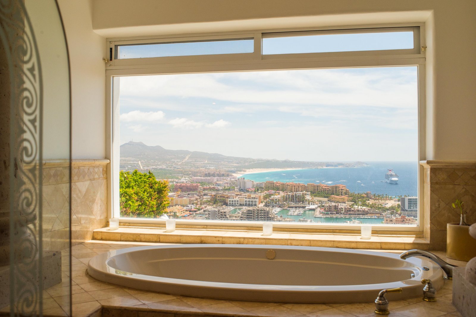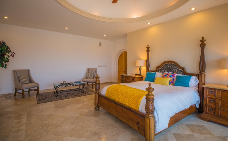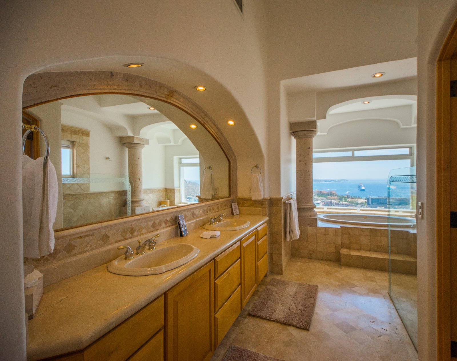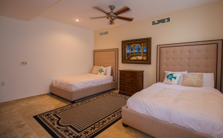The bedrooms are spacious and offer a perfect retreat after adventurous days in Cabo San Lucas. The first three guest suites offer a king-size bed, balcony with ocean views, and private bathrooms. The first guest suite also features a Jacuzzi tub. The fourth room has two full beds, which can be made into a king bed and is perfect for the kids of the group. There is also a queen sofa bed in the living room.