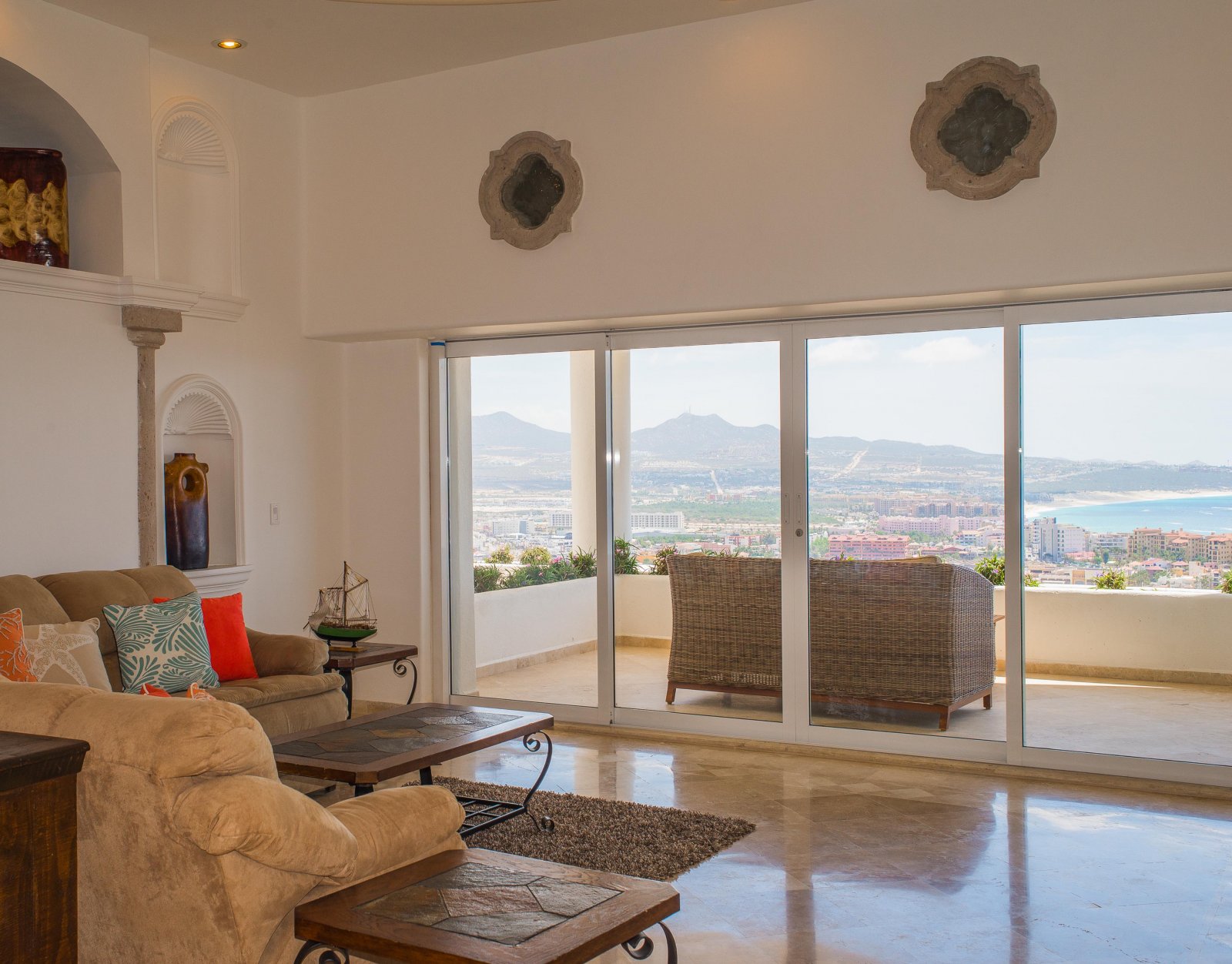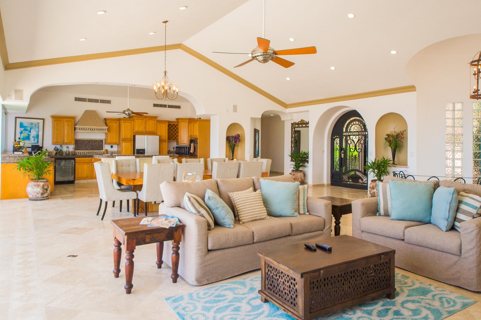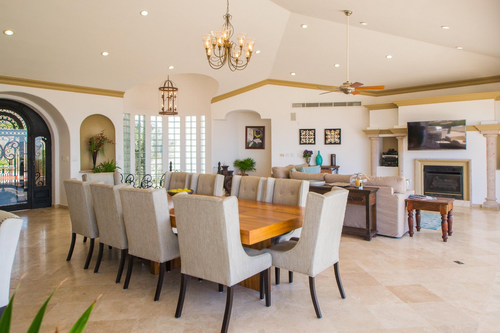 Offering a 180-degree ocean view, the ambiance inside is like that of a 5-star hotel. Large windows and high ceilings offer an open-air and spacious design that brings the essence of the outdoors inside. You can catch a glimpse of the Sea of Cortez from almost every room! Spend time with the family in the gourmet kitchen, fully equipped and perfect for family meals or spend nights together in the comfortable living room. Enjoy dining together as the dining table seats ten.