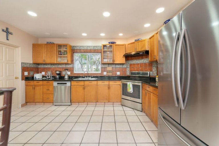The home is newly remodeled, including the kitchen. Guests will love the large kitchen that features granite counter tops, a breakfast bar and tiled flooring. Fully equipped, it has hall the appliances you need to make delicious dinners with the bounty of local seafood and veges.