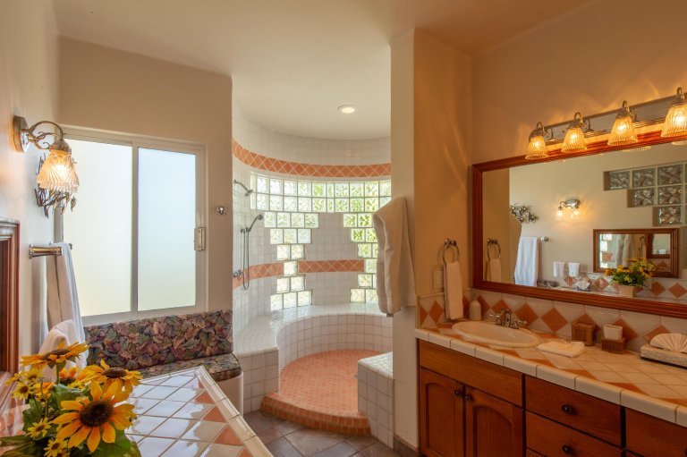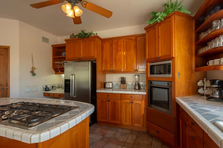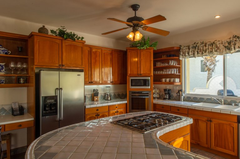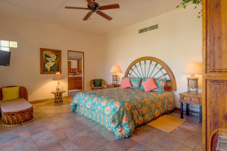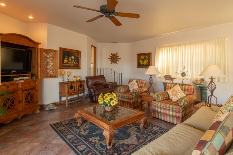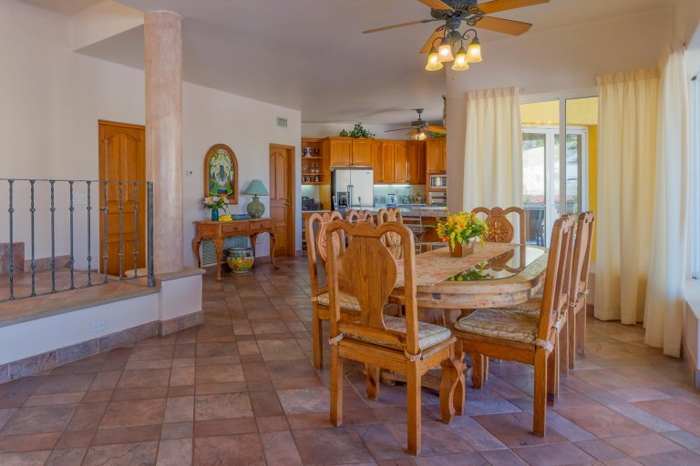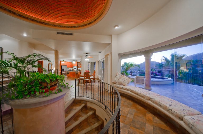 Guests staying at this spacious villa will find that it offers true comfort and relaxation, plus incredible views, which can be enjoyed from almost every part of the home. Inside, this tastefully decorated vacation home features soaring brick dome ceilings, a dramatic spiral staircase, custom furnishings, and Saltillo tile flooring all throughout the home.