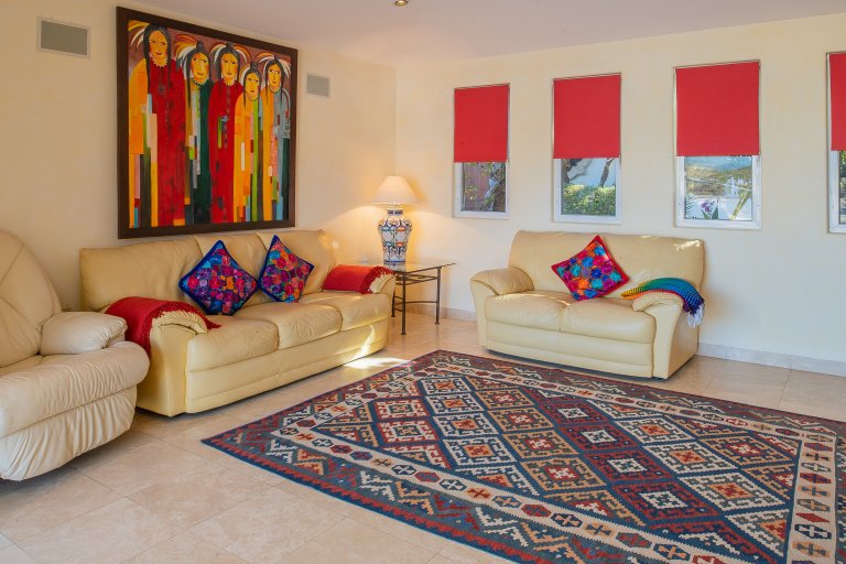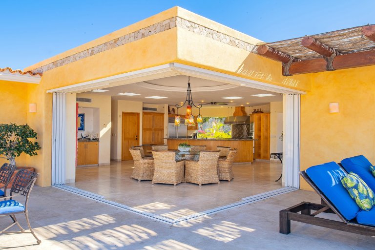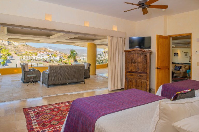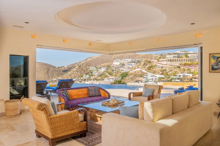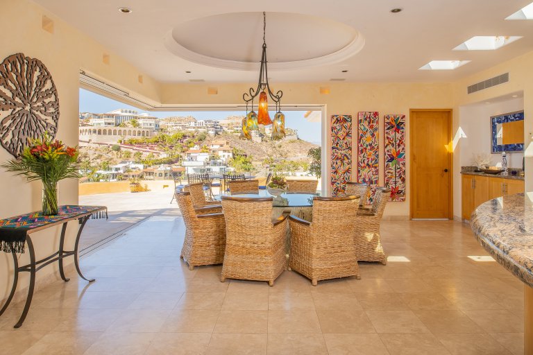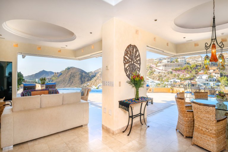 The main living spaces are all seamlessly connected the spacious terrace. Hillsides of sumptuous villas and the glittering Blue Pacific are your backdrop during your stay at Villa Dos Vistas. The terraces glass wall maximizes the views from all angles.