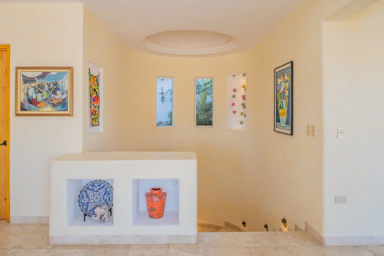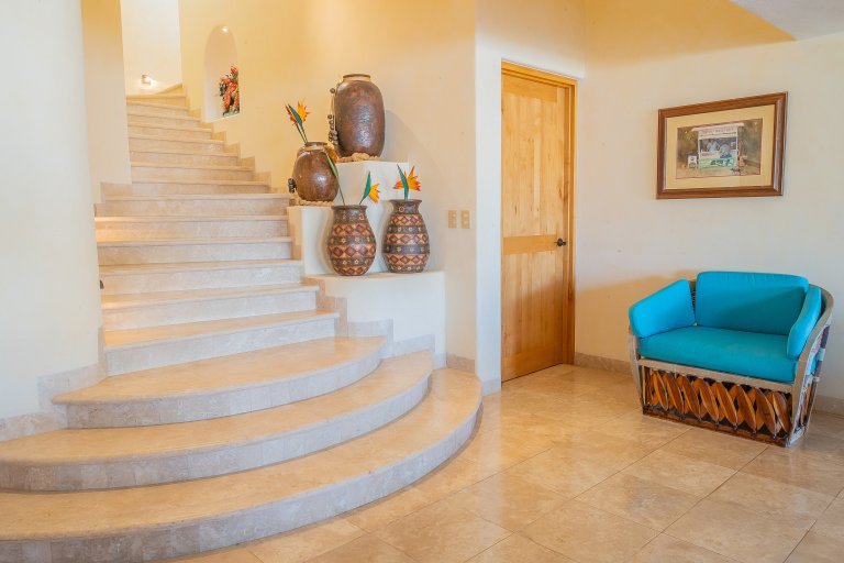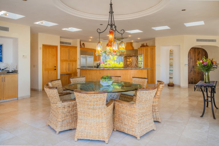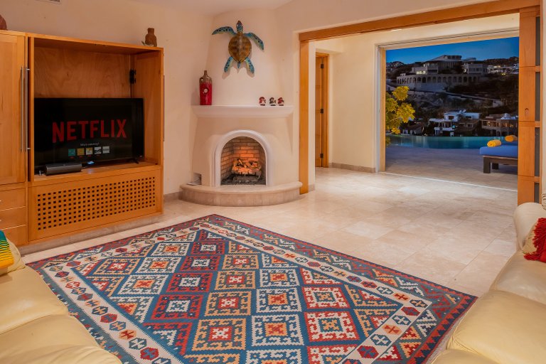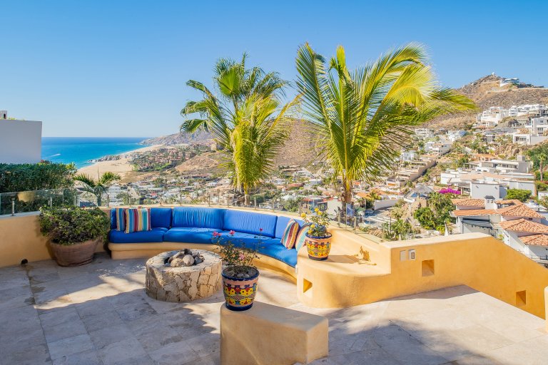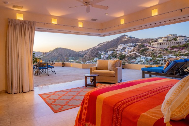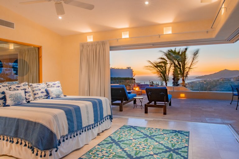 The terrace also boasts a gorgeous, covered, built-in barbecue area that is ideal for grilling up Cabo’s world-famous locally caught seafood for evening meals. Ample built-in seating along the terrace ensures there is plenty of space for guests to spread out and enjoy Cabo’s sunset sky colors and balmy evenings while meals are prepped, while a fire pit creates a festive focal point during the evenings.
