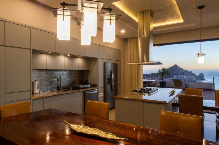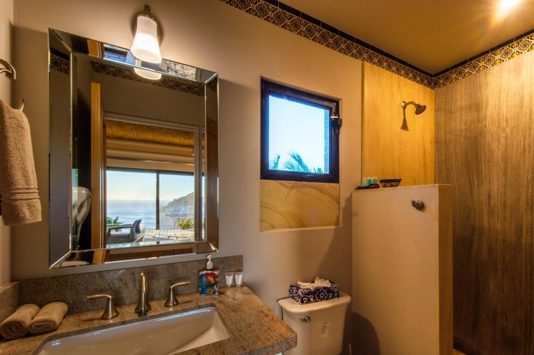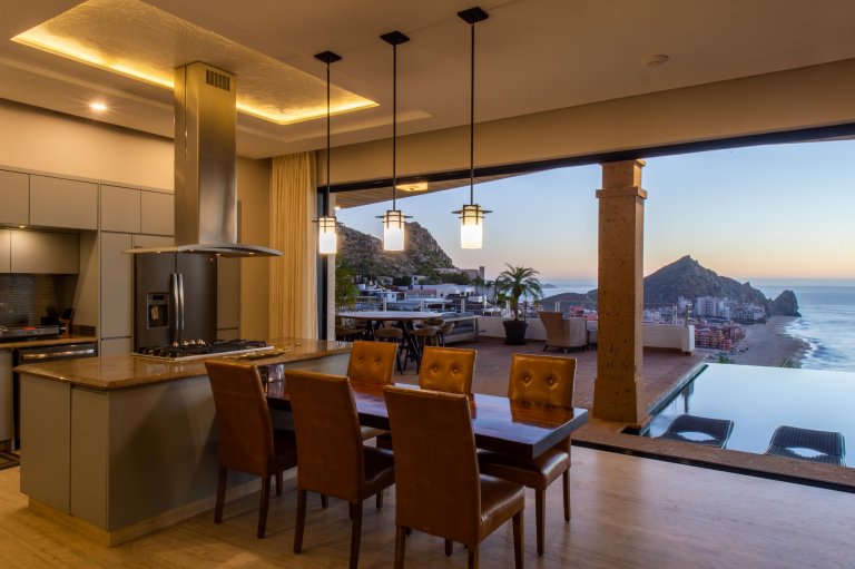 Cabo Villa Jade spares no luxury. The home’s amenities include central air-conditioning, ceiling fans, a water purification system, Wi-Fi, and maid service Monday through Saturday.