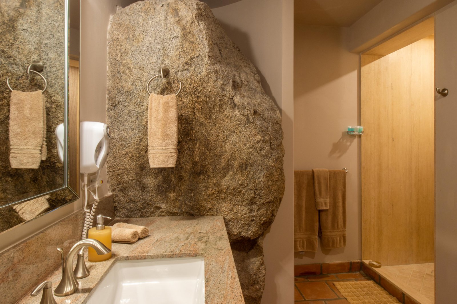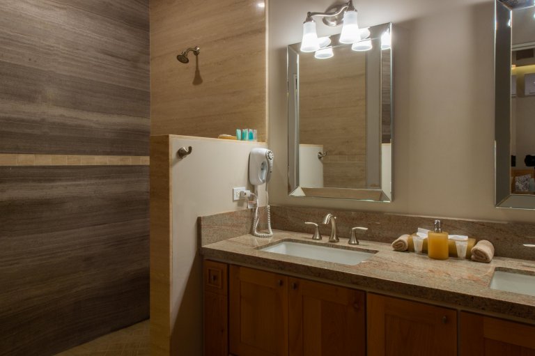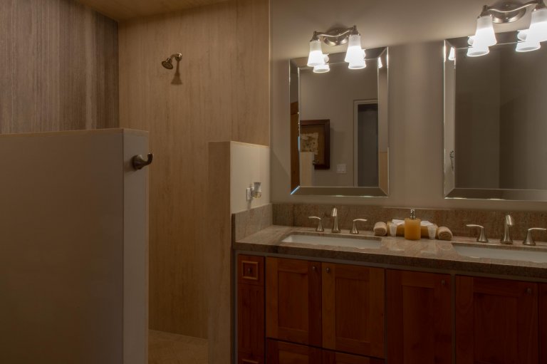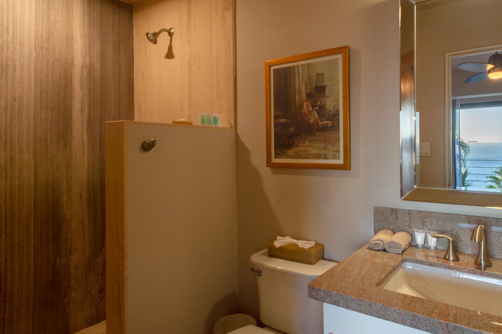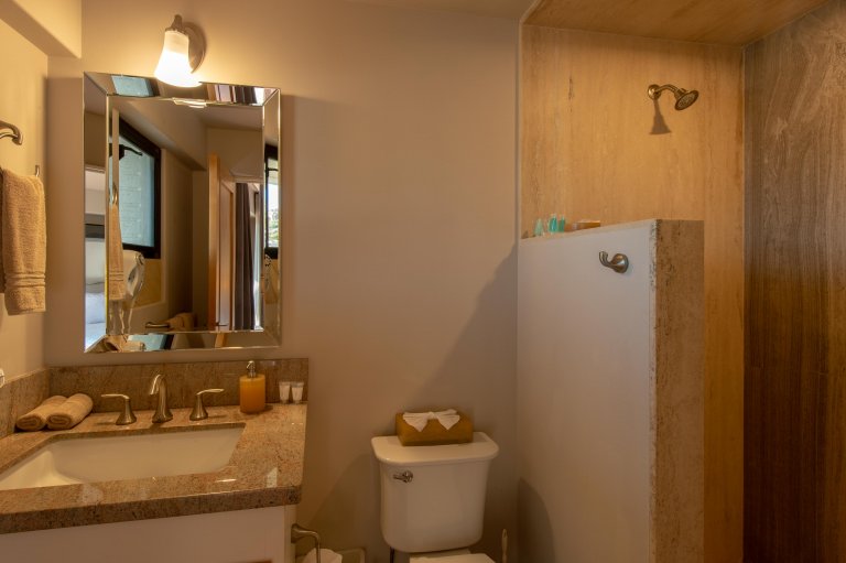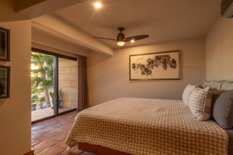 Seven of the villa’s bedrooms are located in the main house, while the eighth is tucked away in the casita. The casita, which only has exterior access, is perfect for couples looking for more privacy. This bedroom has a California king-sized bed, a full-size sleeper sofa, and an en-suite bathroom.