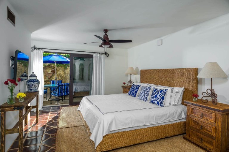 Bed: King Bed • En-Suite Bath with Bathtub • Flat-Screen TV • Direct Access to Private Terrace and Pool • Safe • Ceiling Fan