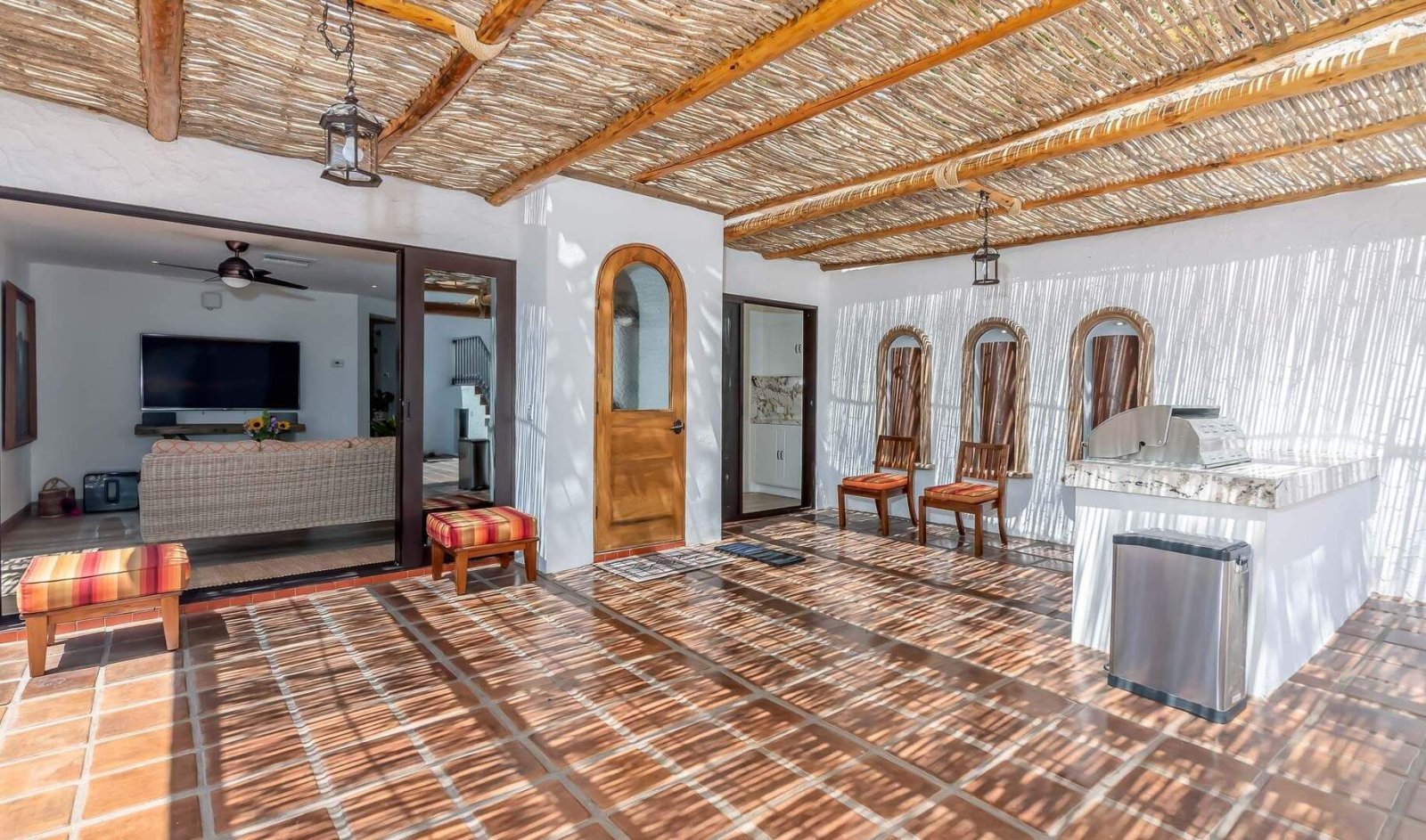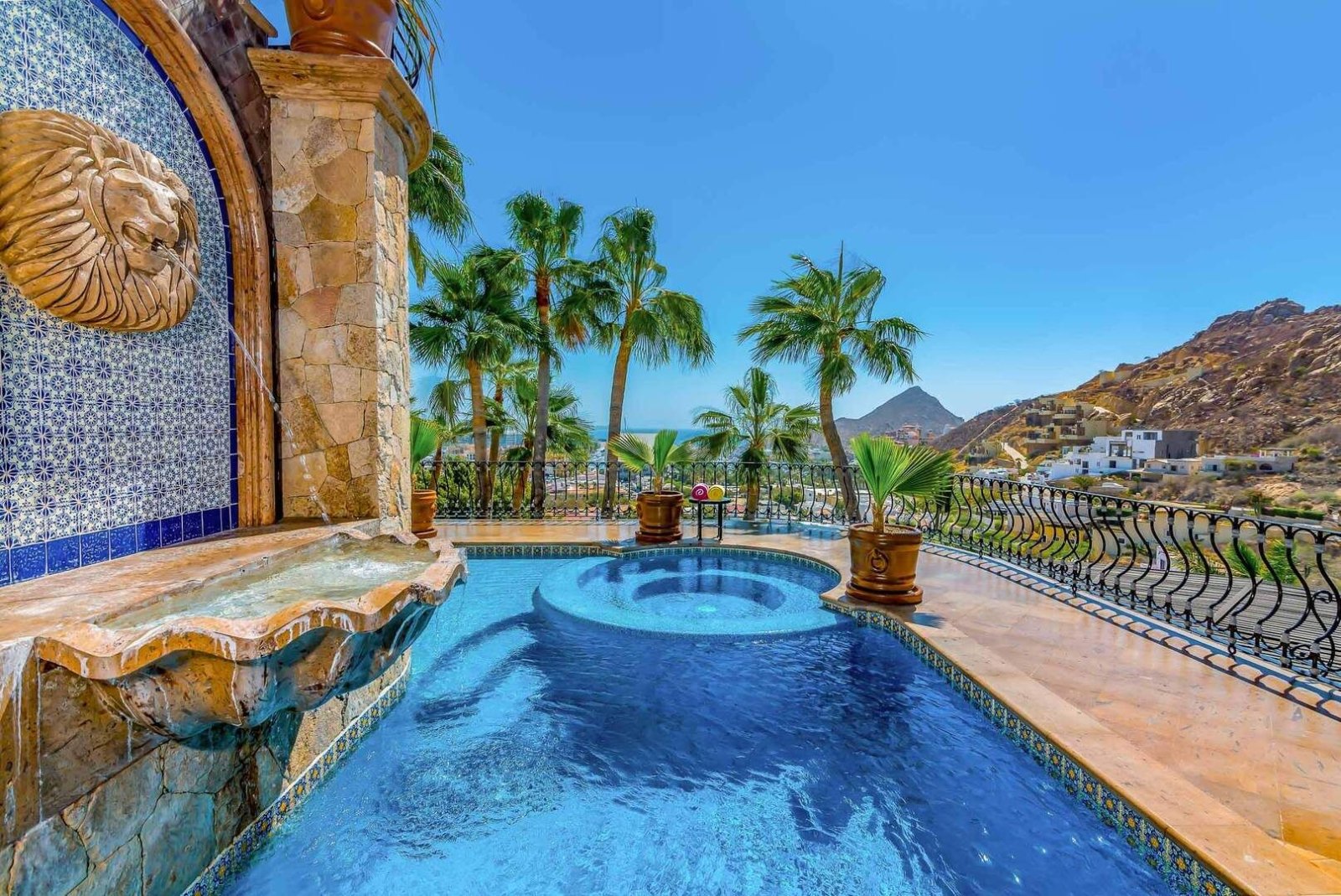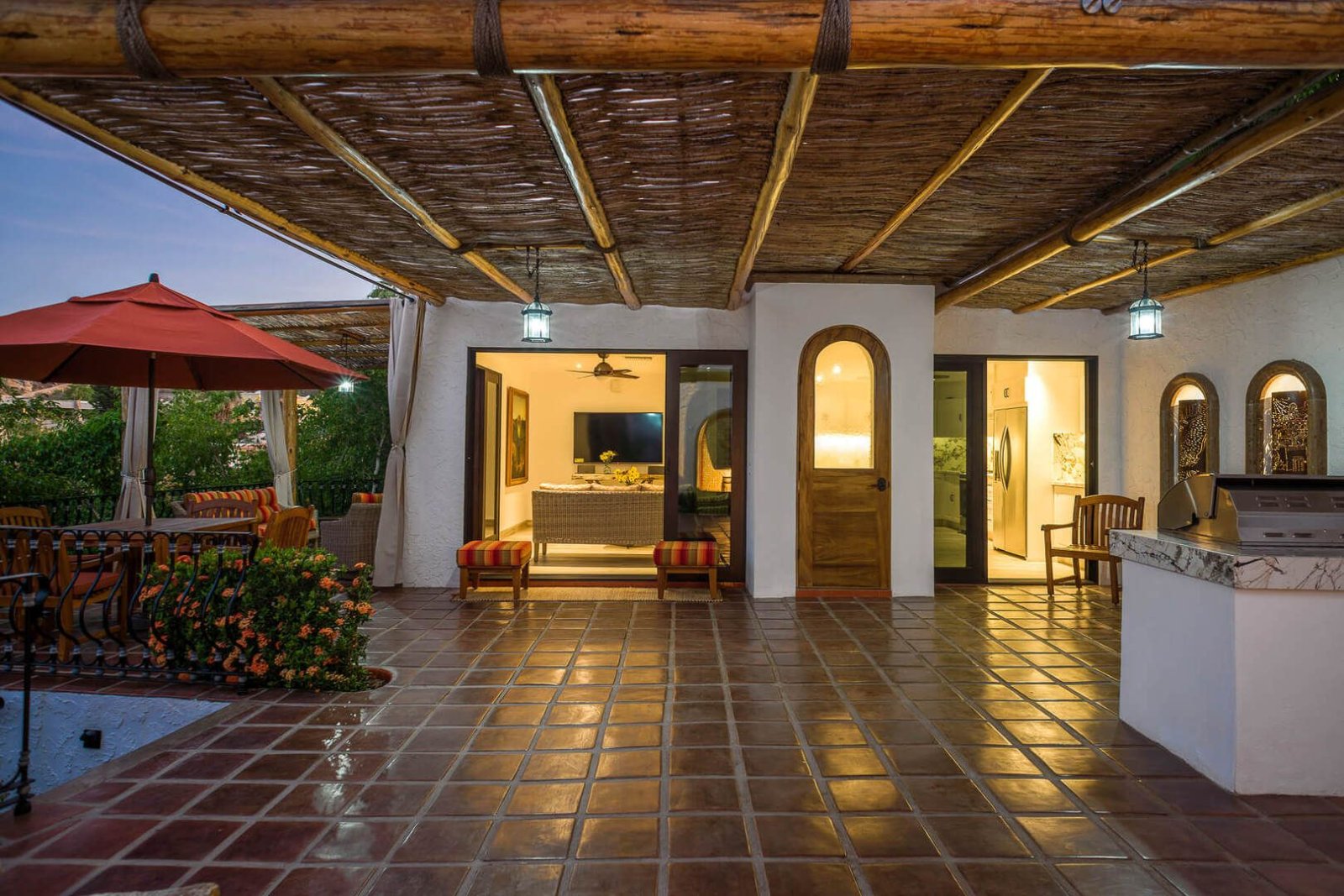 Heated Pool • Chaise Lounge w/Cushions • Palapa-Style Area • Indoor/Outdoor Sound System • Built-In BBQ • Outdoor Dining Table - Seats 6 • Multiple Seating Areas • Poolside Umbrellas