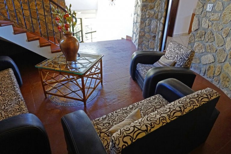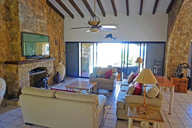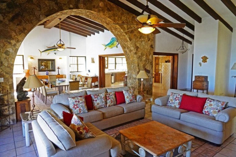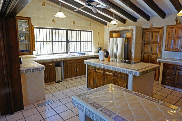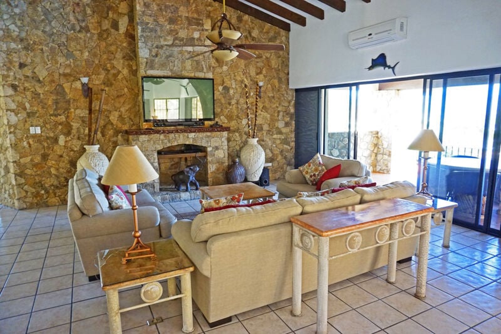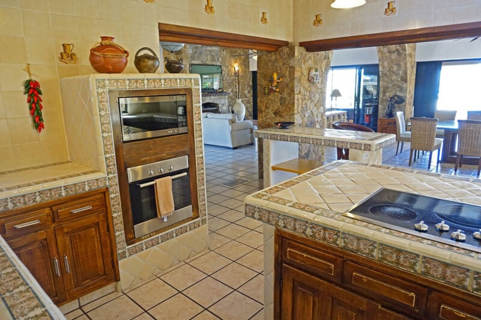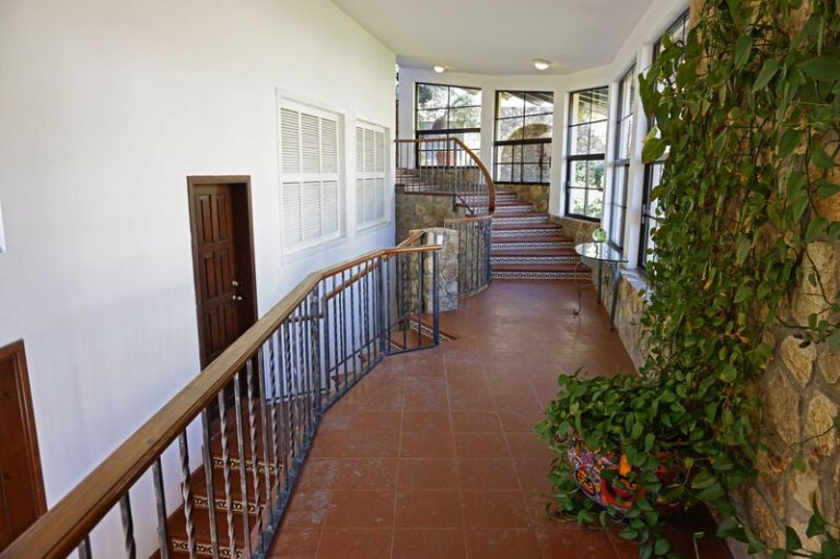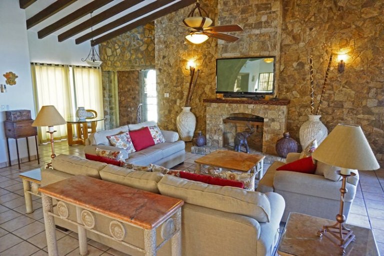 The villa has a stunning great room and showcases expert Mexican stone artisanship. You will notice its grand design, including large spiral staircases and rooms with smooth stone and tile surfaces.