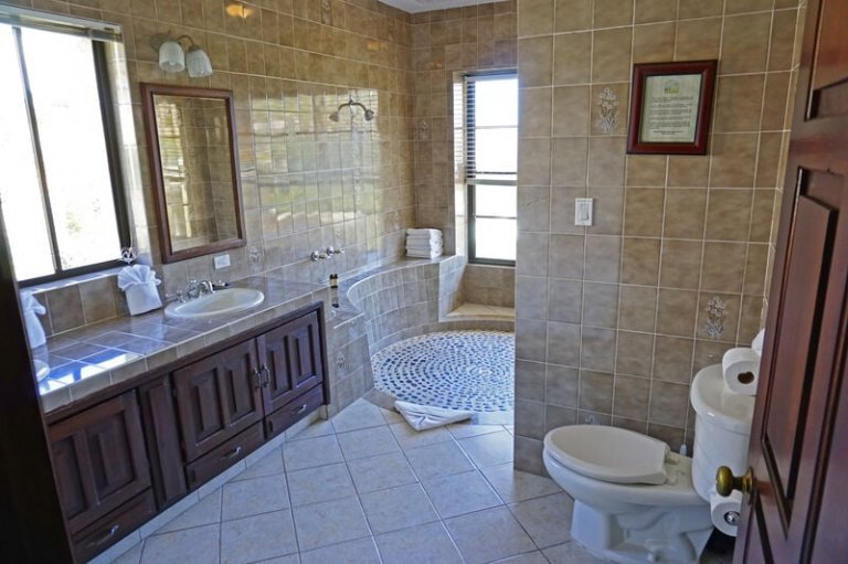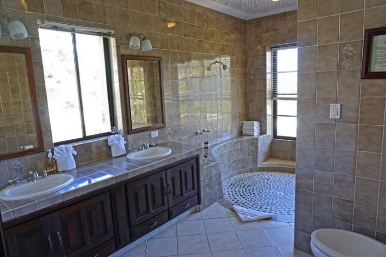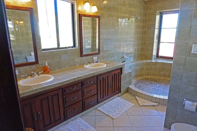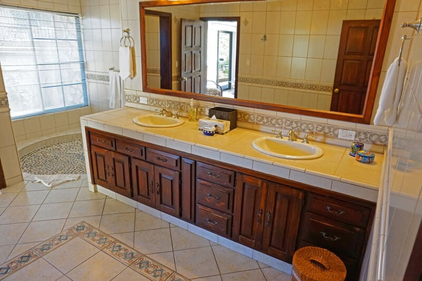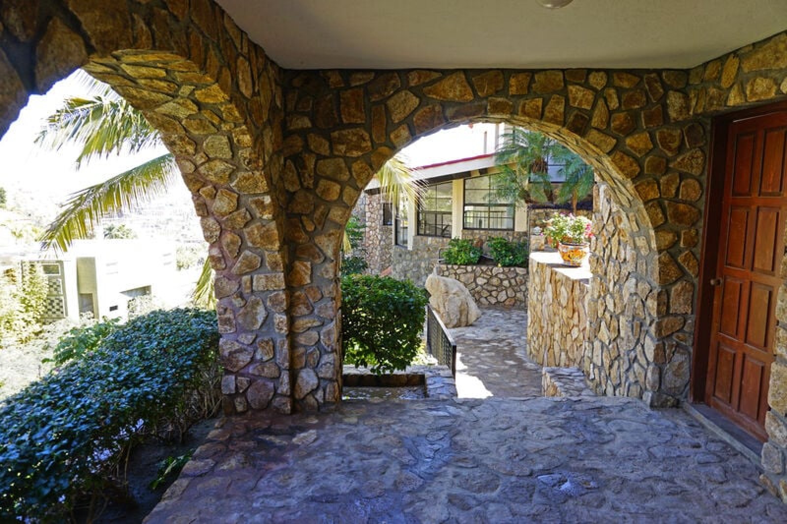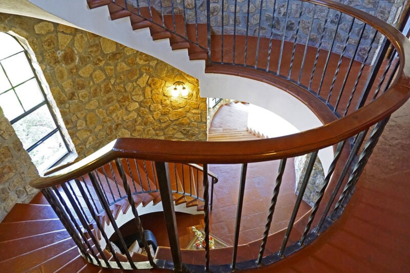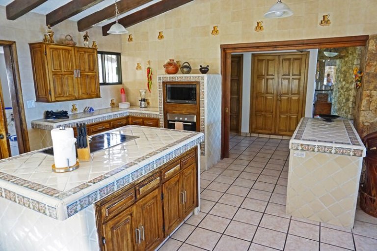 The villa has a stunning great room and showcases expert Mexican stone artisanship. You will notice its grand design, including large spiral staircases and rooms with smooth stone and tile surfaces.