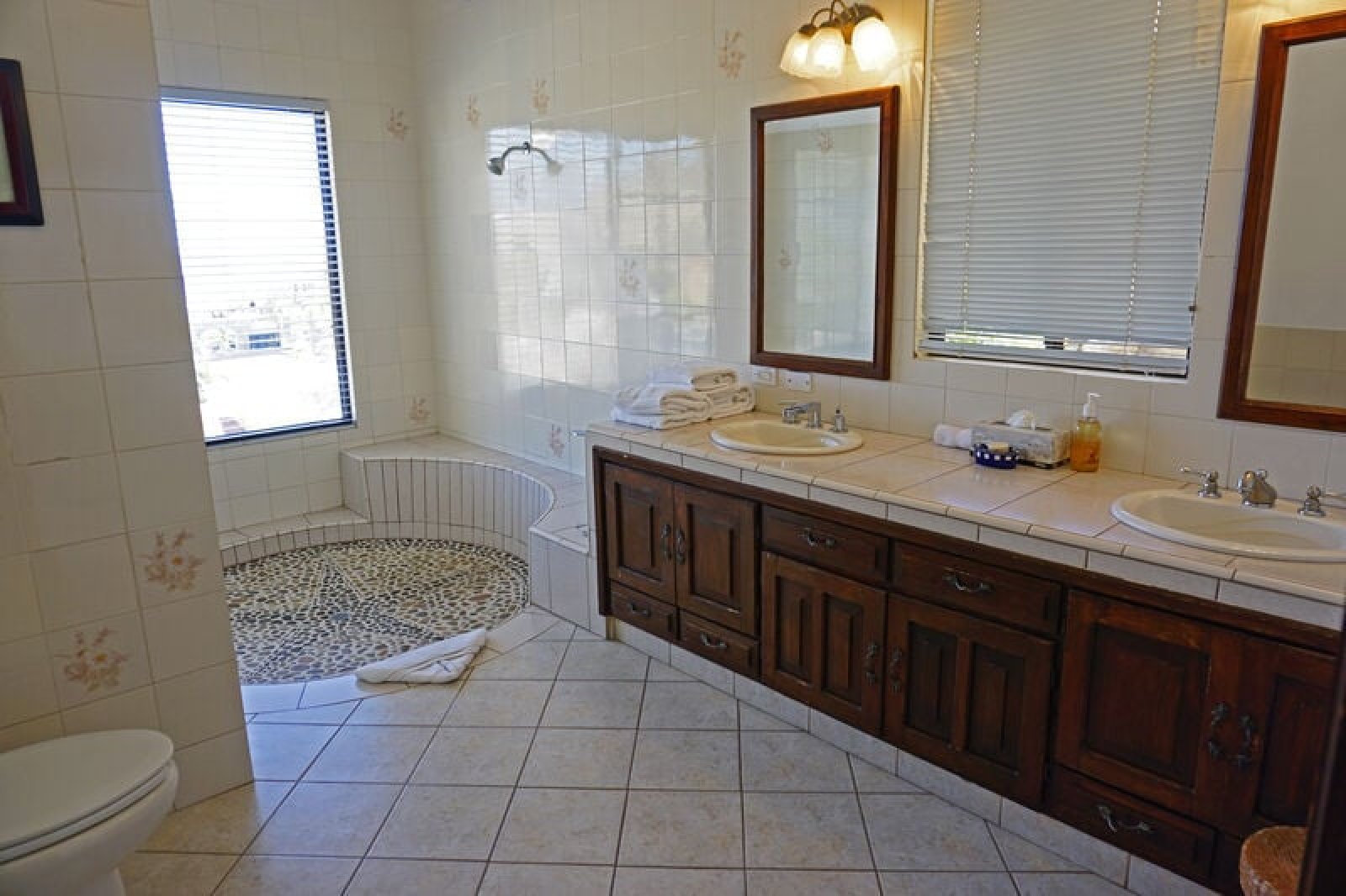 The bedrooms of Marlin Crest Villa are large and bright, and have a mix of bed setups, including two with king-size beds, two with queen-size beds and two with two queen-size beds. All the bedrooms come with en-suite bathrooms and air conditioning. See below for bedroom details.