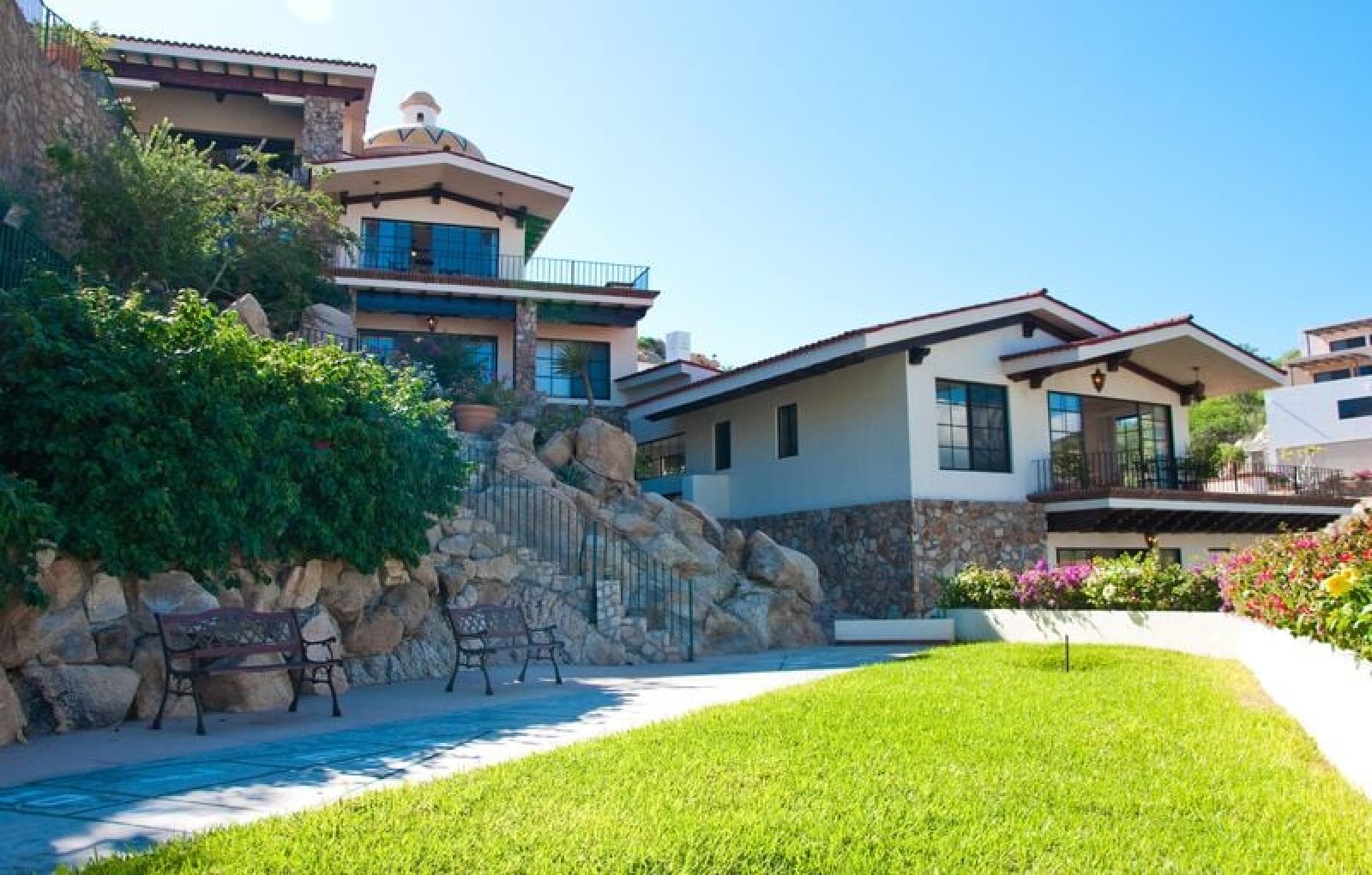 Marlin Crest Villa is composed of a main villa with eight bedrooms and guest studio apartment. This Cabo vacation home is ideal for large groups looking for a vacation rental with ample space for all guests to congregate and retire to private rooms.