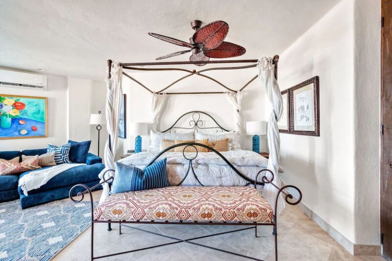 Bed: King Bed • En-Suite Bath with Walk-In Shower and Dual Vanity • Air Conditioning • Ceiling Fan • Flat-Screen TV • Sofa