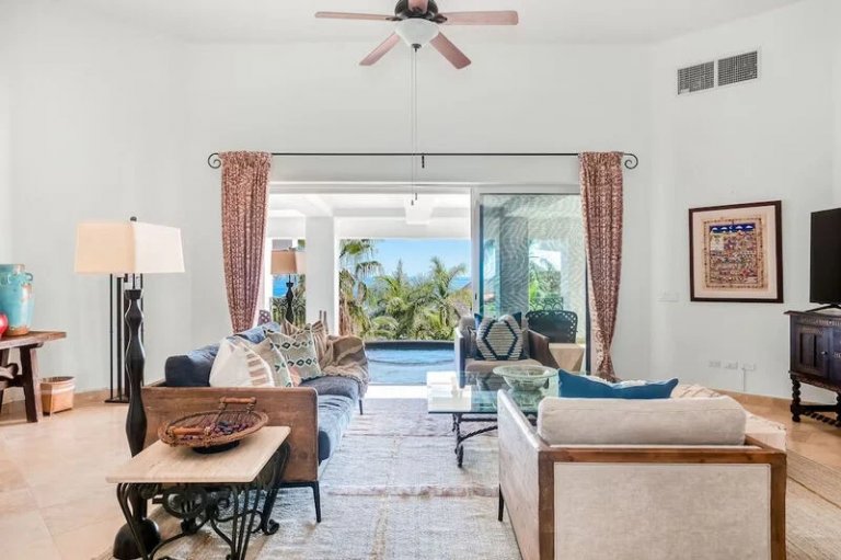 Sofa • Flat-Screen TV • Additional Seating • Direct Access to Patio and Pool • Ceiling Fan • Open Concept