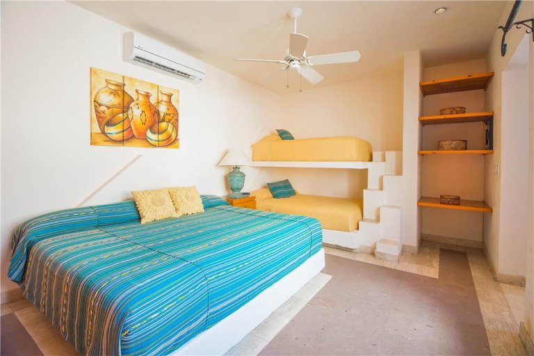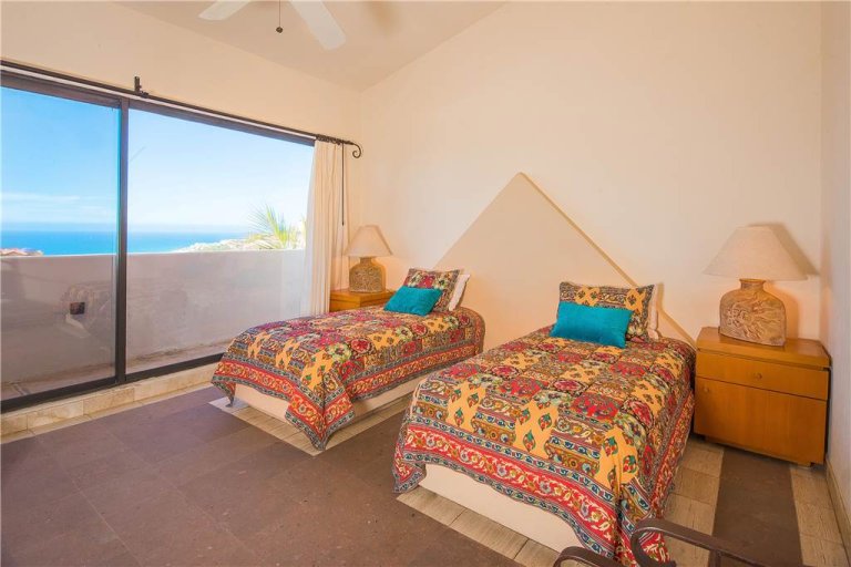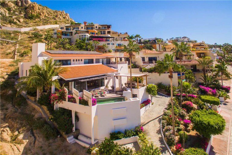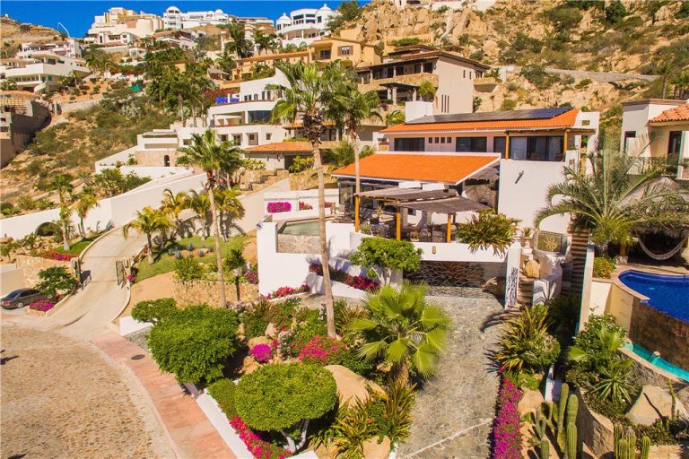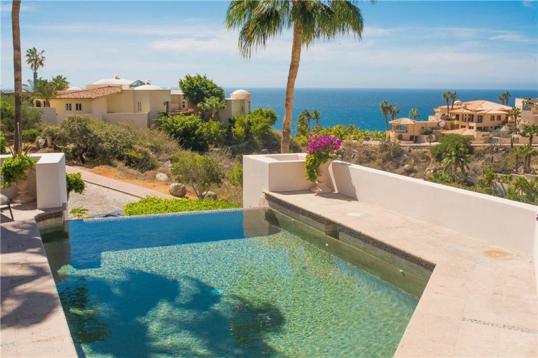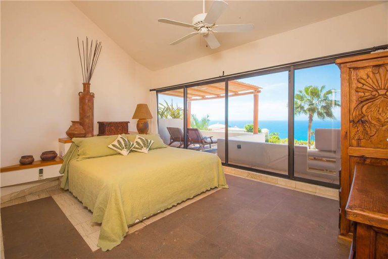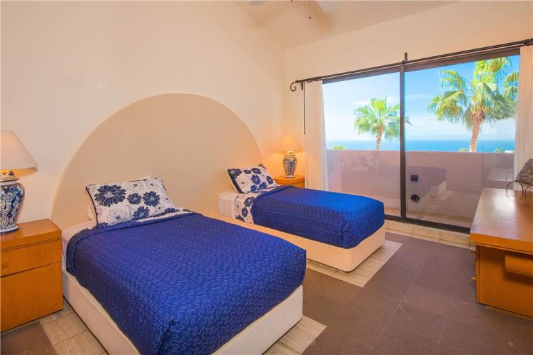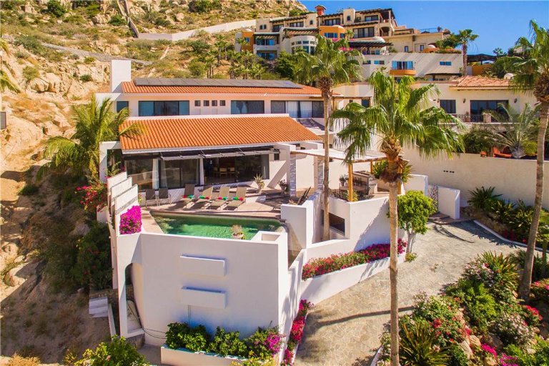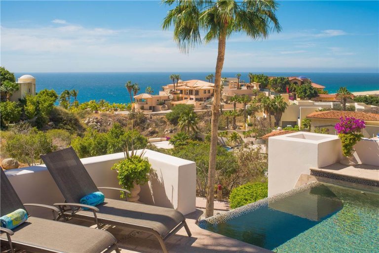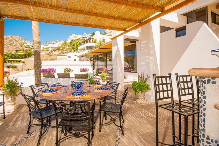Let the gentle ocean breezes caress you while you enjoy the gorgeous views of the Pacific from this lovely hillside villa. Or, take in the view from the floor-to-ceiling windows inside. With its built-in bar, entertainment center, and living area that opens onto a large patio with pool, you’ll appreciate the quality and style of this ideal Pedregal home. Most of the villa’s spacious bedrooms have beguiling ocean views, and all have private bathrooms. There are also spectacular views from many vantage points on the property, but if you really can’t get enough of those sparkling blues, you merely have to take a short stroll on a private road that leads directly down to a scenic beach. Hanging around outside the villa has its perks too, with its infinity pool and the alfresco dining for 8 under the cozy palapa. The villa’s grounds are appealingly landscaped—in fact, “appealing” is a word that suits this villa perfectly. From its striking hillside setting to its travertine floors, Villa del Sol is an attractive home that will fulfill all your getaway needs.