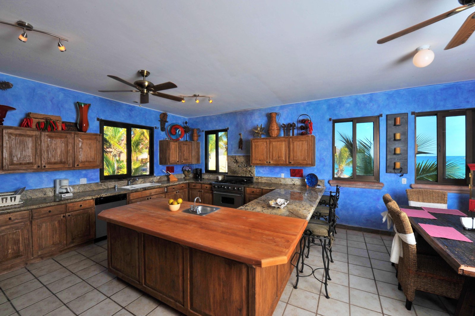 Take a moment out of your day to lounge under the warm sun, if it gets too hot guests have the option to relax under the nearby-furnished Palapa or take a refreshing dip into the large swimming pool and enjoy the swim-up bar! Before the day ends, unwind in the two outdoor Jacuzzis and watch as the evening sun lights up the night sky! Whether you are looking for a quiet escape or fun-filled family vacation, this spacious villa has it all!