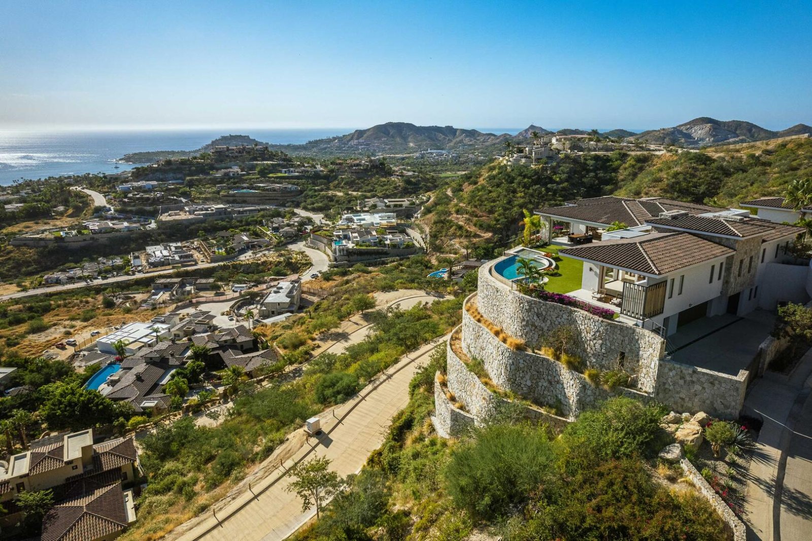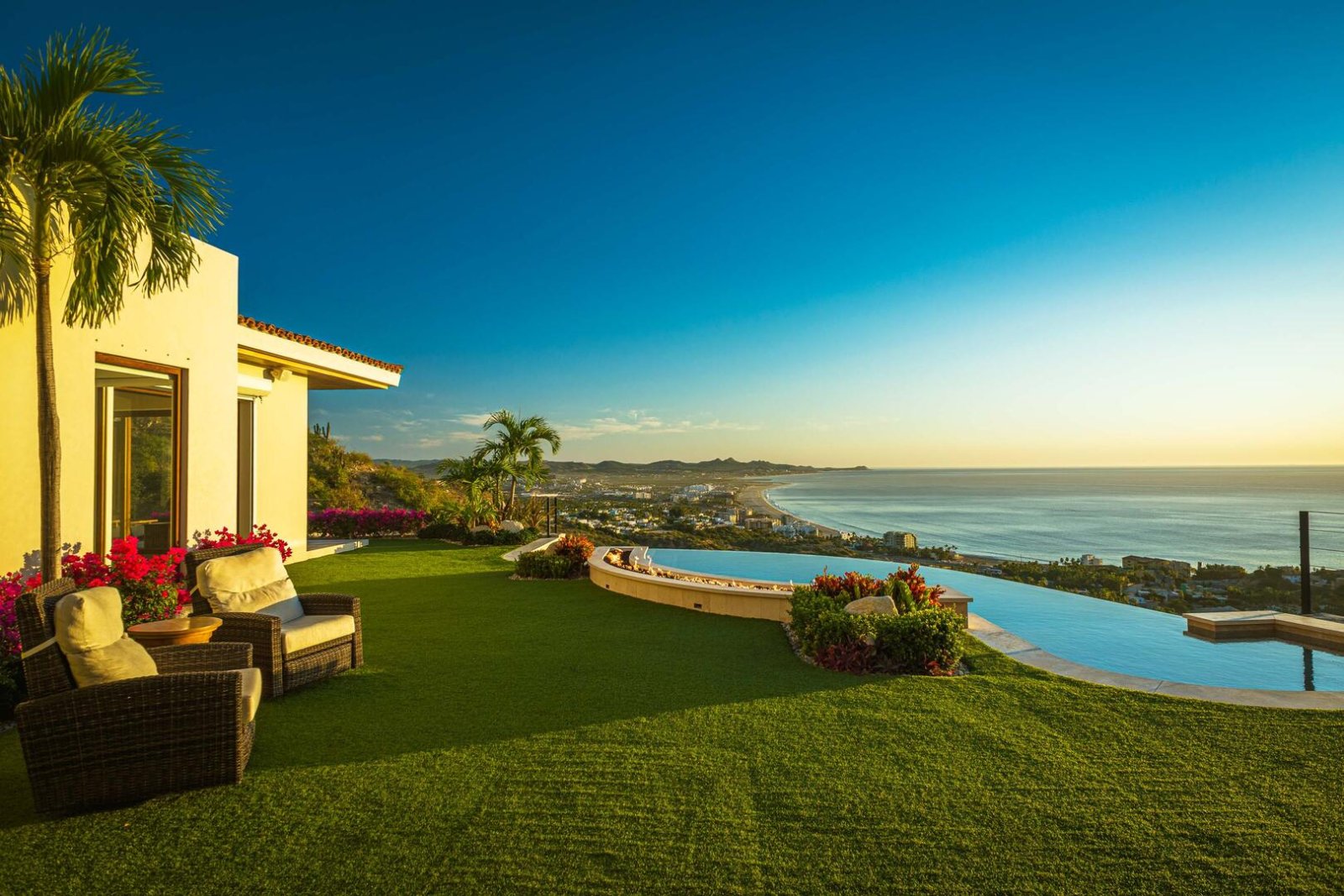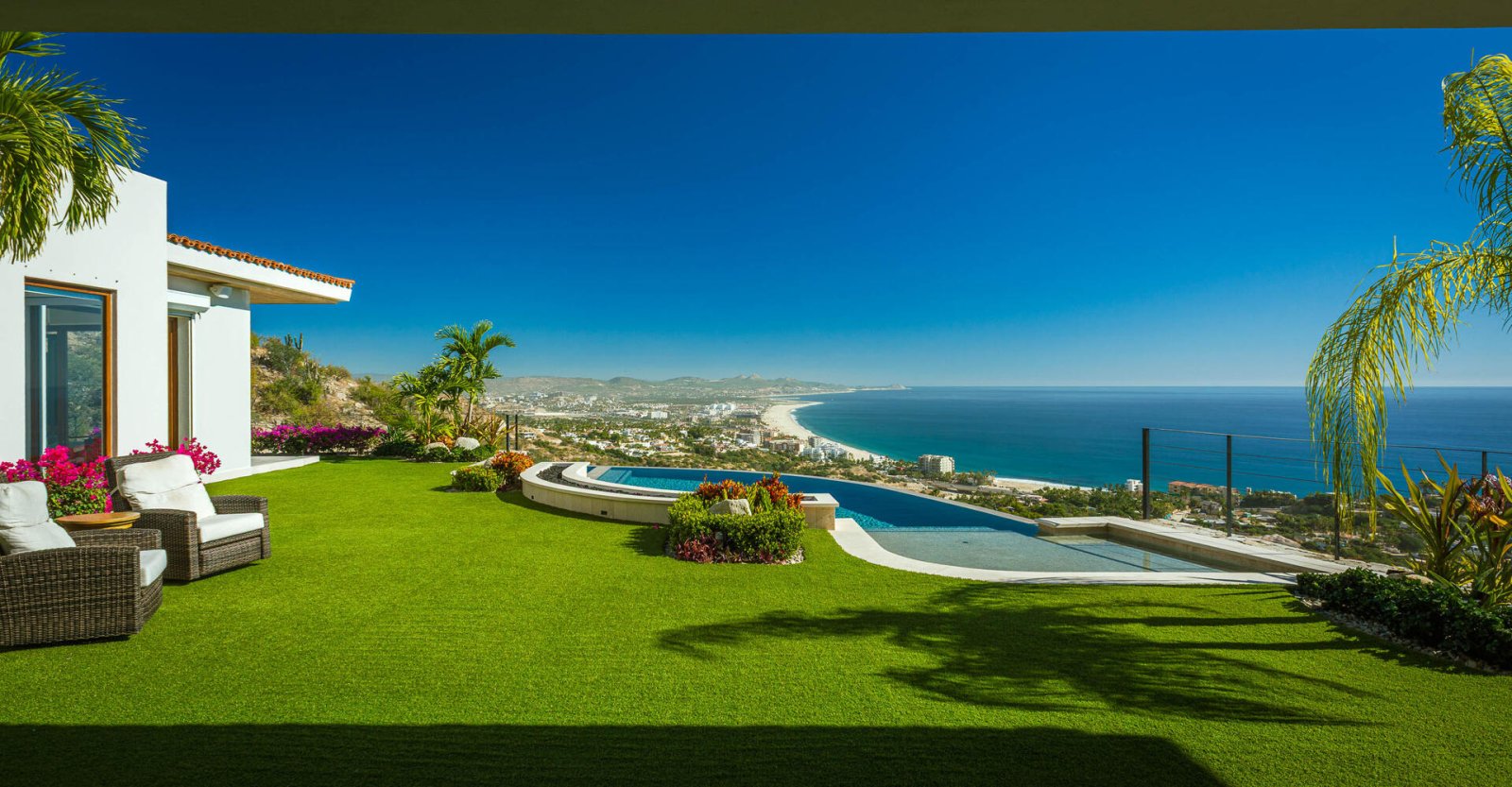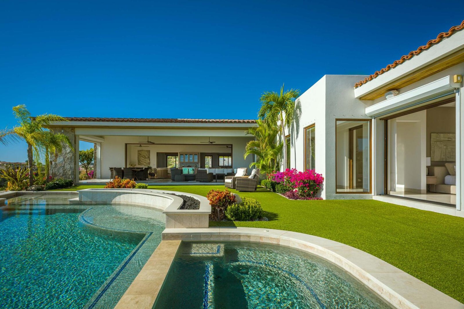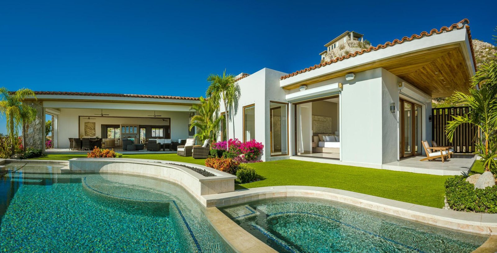 This ever-expanding, newer construction community in Los Cabos boasts a 10-mile trail system for hiking and biking, plus the Querencia Beach Club adds in fitness, dining, a satellite spa, swimming pools, and beach activities. Enjoy adventures on land or water when you take your vacation to Los Cabos. The home additionally offers such conveniences as free Wi-Fi, zoned audio, Netflix, a security system and a water purification system. As well, the home supplies maid service on most days.