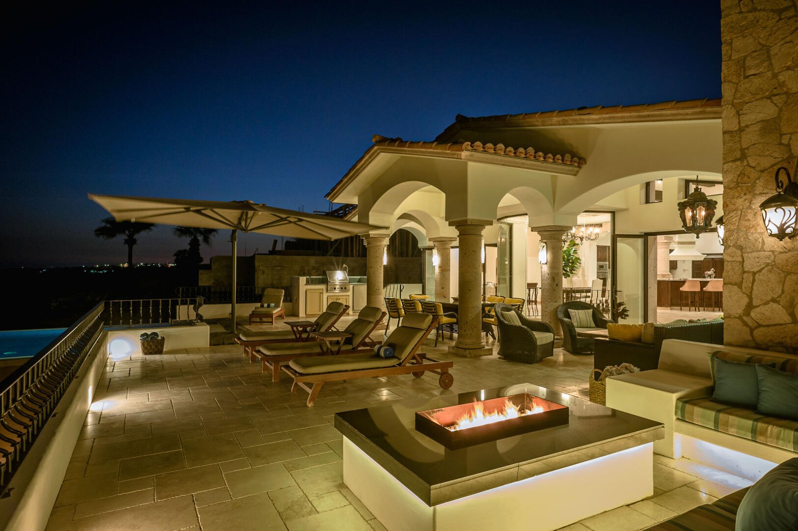 Outdoor Dining Table - Seats 8 • Sofas • Pool • Deck * • Gas BBQ Grill • Fire Pit • Fireplace • Palapa-Style Area