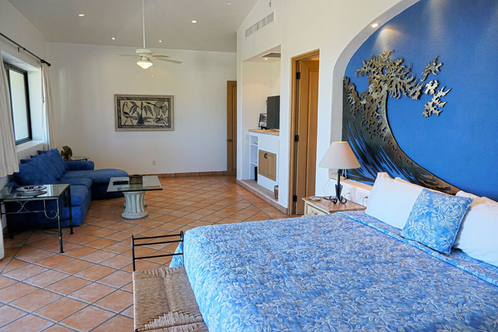 As you walk through the large sliding glass doors, you will find yourself outside on the private terrace looking over panoramic ocean views. Take a dip in the private pool as you watch the sunset, or read one of your favorite books on the comfortable lounge chairs. If you’re looking to feel the warm sand between your toes, the beach is only a short walk away and you can enjoy one of Cabos few swimming beaches.