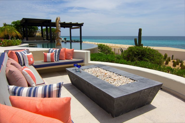 Step outdoors toward the furnished patio and lounge under the warm tropical sun near the infinity-edge pool and Jacuzzi. There is a built-in barbecue and dining area located near the edge of the property, offering residents an incredible oceanfront dining experience for up to eight guests. As the day comes to an end, gather around the outdoor fire pit and enjoy intimate conversations with loved ones under the stars.
