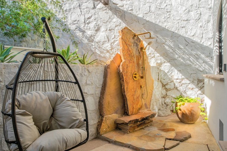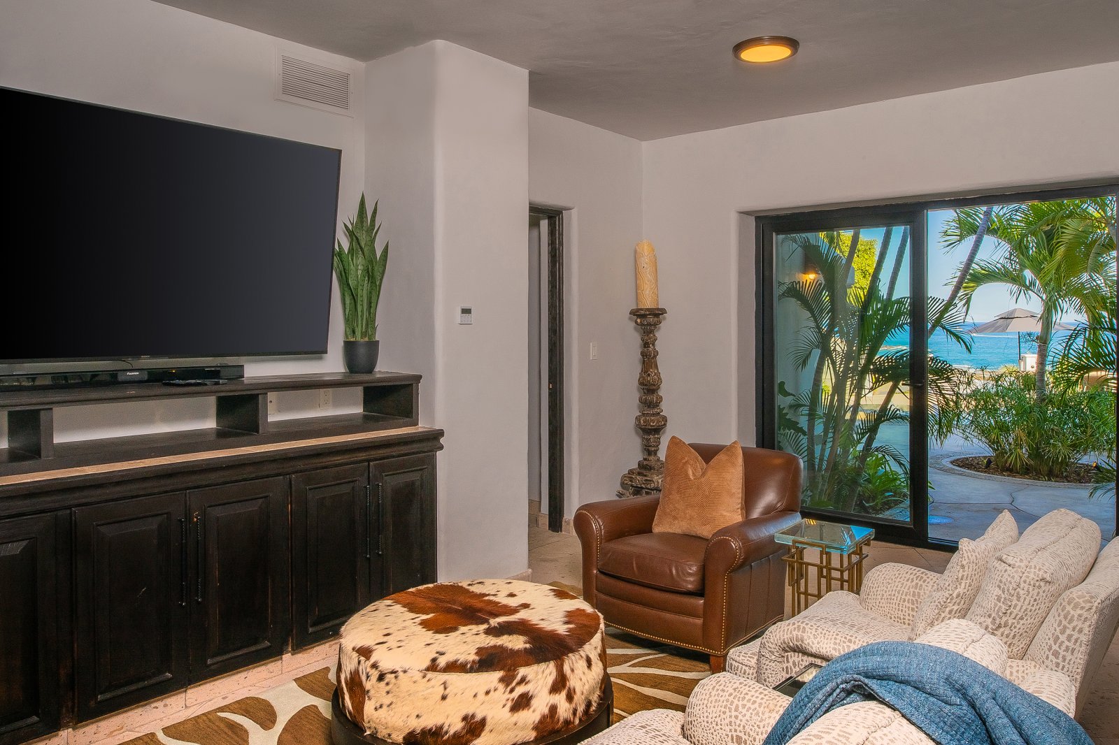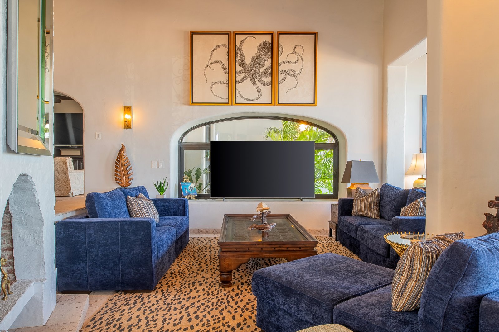 Guests will appreciate the stunning amenities of this beautiful escape. The outdoor spaces at Casa Bellamar are nothing short of spectacular, featuring a spacious terrace with a sparkling pool, a rejuvenating jacuzzi, and a cozy fire pit perfect for evening gatherings under the stars. A gas grill and ample seating make outdoor dining a delight. Inside, the villa’s striking interior design blends rich textures, tasteful accents, and elegant furnishings to create a warm and inviting atmosphere, making every moment spent here truly special.
