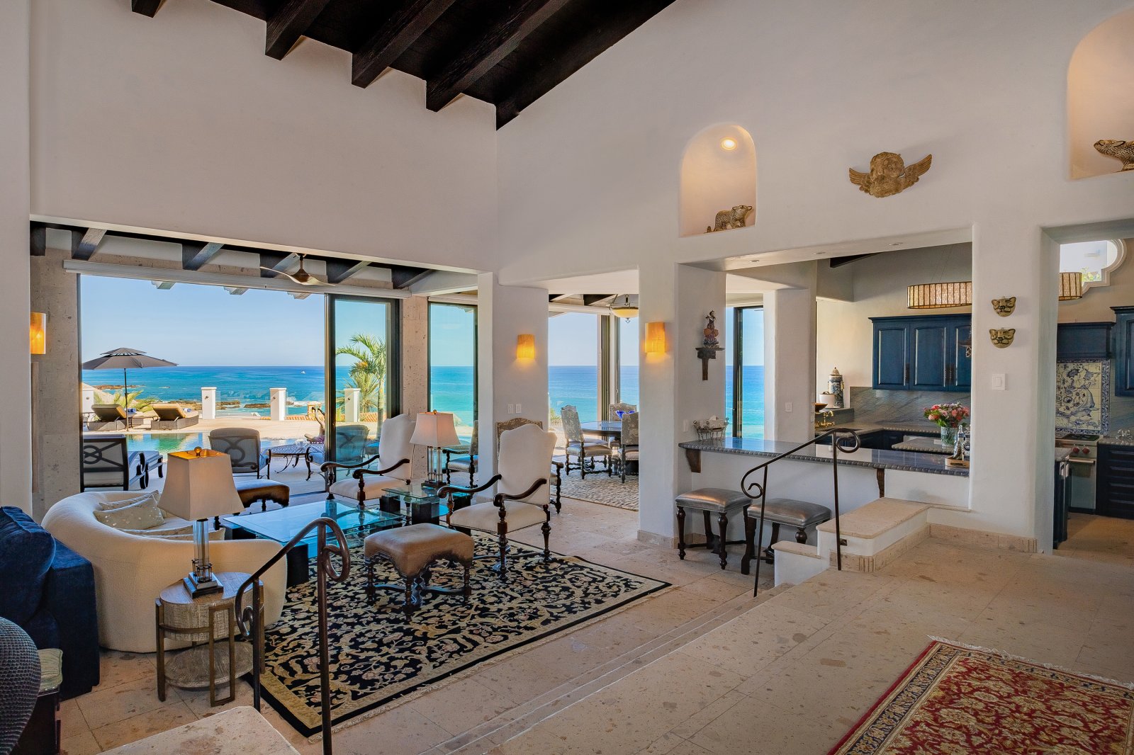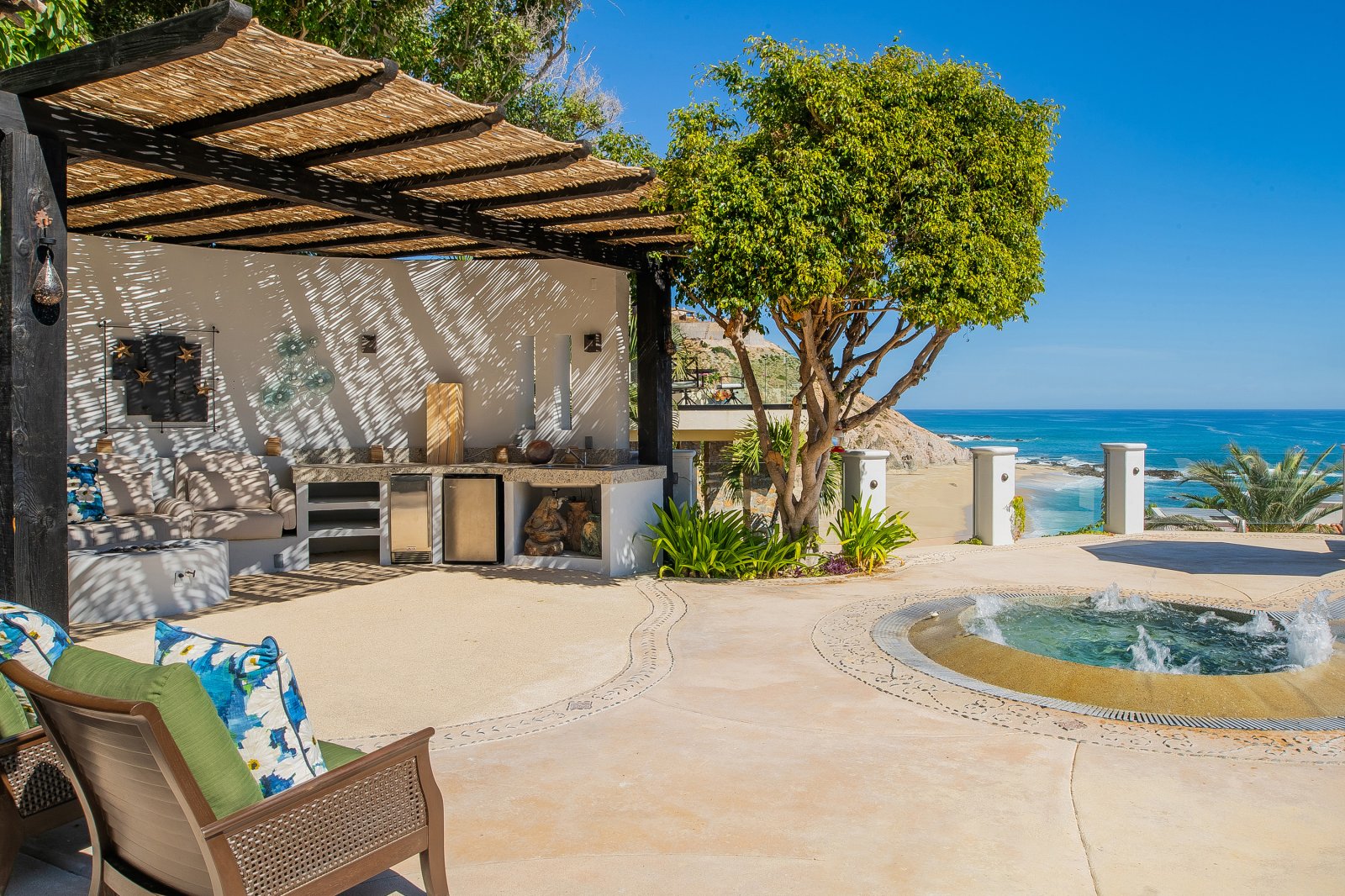 Casa Bellamar de Cabo Colorado is a luxurious villa retreat in Los Cabos, offering breathtaking views of the Sea of Cortez and easy access to a pristine beach within walking distance. The villa’s hacienda-inspired architecture and stunning interior design blend traditional Mexican elements with modern luxury, creating an inviting and elegant atmosphere.