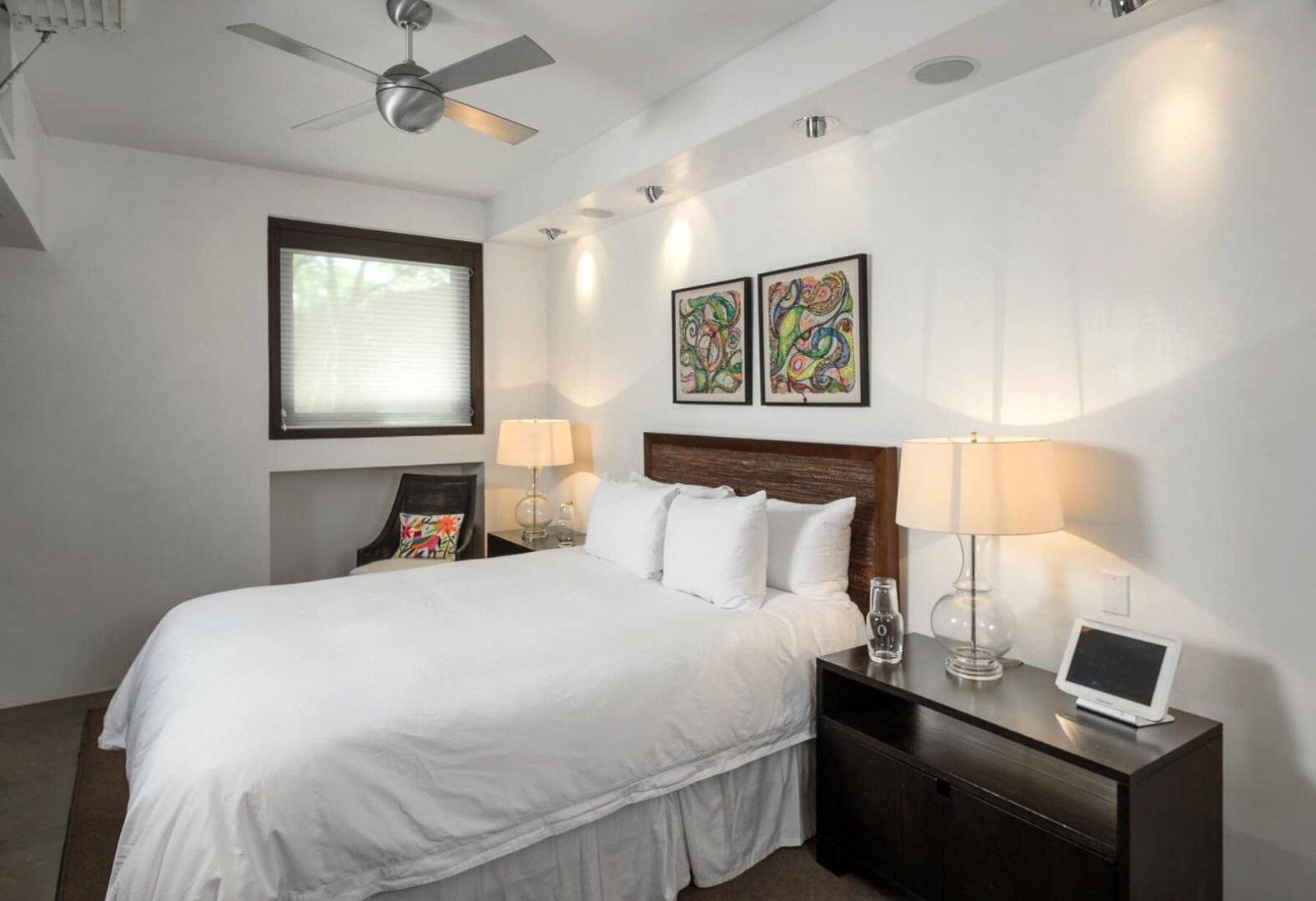 2 Bed: Queen Beds • En-Suite Bath • High Ceilings • Direct Access to Patio
